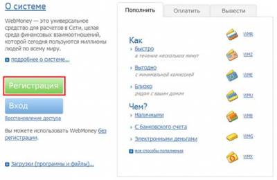 Здравствуйте! Практически для любого человека, который сидит в интернете, нужен электронный кошелёк для оплаты различного рода вещей: оплата бытовой техники, покупка домена, одежды и многого другого. И поэтому, сегодня мы будем учиться регистрироваться на вебмани. Вебмани – это лучшее средство для расчёта в сети. 1. Итак, для начала мы переходи на сайт www.webmoney.ru. Будьте внимательны, смотрите, чтобы сайт был именно тот, который мы написали, т.к. сейчас в интернете очень много мошенников. 2. Далее мы нажимаем на кнопочку «Регистрация» . Как видите, кнопка очень яркая, так что Вы её сразу найдёте.